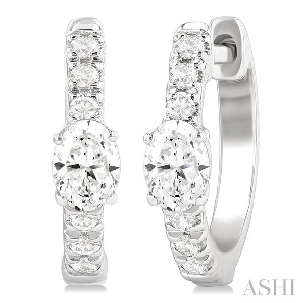 (256) 764-40133/8 Ctw Oval Shape and Round Cut Diamond Fashion Huggie Petite Earrings in 14K White Gold