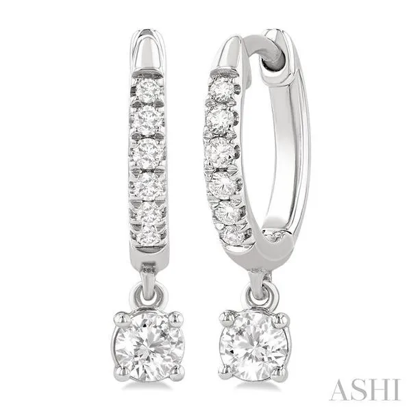 (256) 764-40133/8 Ctw Round Shape Round Cut Diamond Fashion Huggie Petite Earrings in 14K White Gold