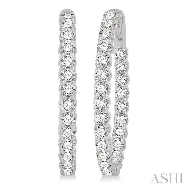 (256) 764-40134 Ctw Inside-Out Round Cut Diamond Oval Shape Hoop Earrings in 14K White Gold