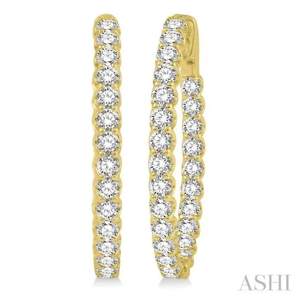 (256) 764-40134 Ctw Inside-Out Round Cut Diamond Oval Shape Hoop Earrings in 14K Yellow Gold