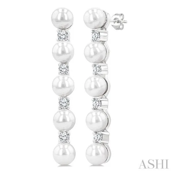 (256) 764-40134MM Cultured Pearl and 1/4 Ctw Round Cut Diamond Fashion Earrings in 14K White Gold