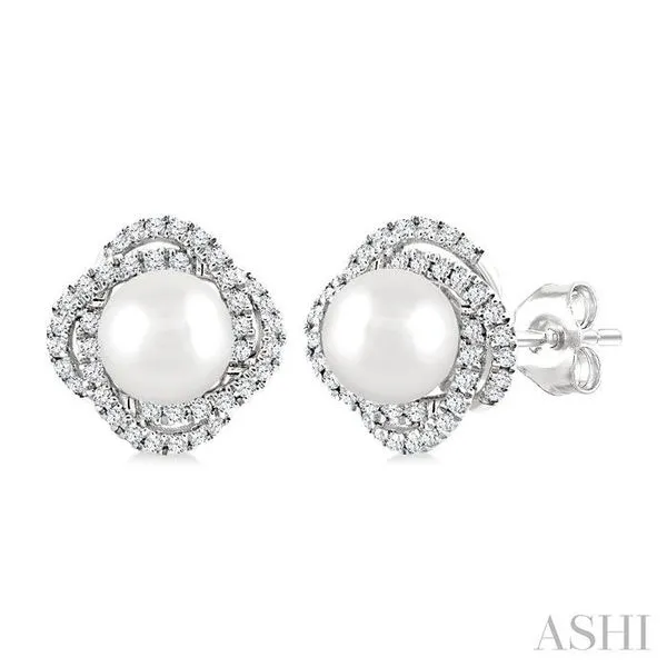 (256) 764-40135 MM Cultured Pearl and 1/4 Ctw Single Cut Diamond Petite Fashion Earrings in 10K White Gold