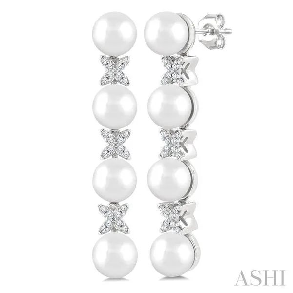 (256) 764-40135 MM Cultured Pearl and 1/6 Ctw Round Cut Diamond Floral Fashion Earrings in 14K White Gold