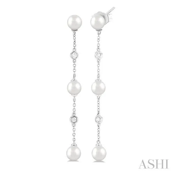 (256) 764-40135 MM Round Shape Cultured Pearl and 1/10 Ctw Round Cut Diamond Station Long Earring in 14K White Gold
