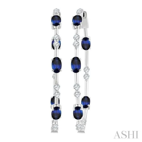 (256) 764-40135x3 MM Oval Shape Sapphire and 7/8 Ctw Round Cut Diamond Precious Inside-Out Hoop Earrings in 14K White Gold