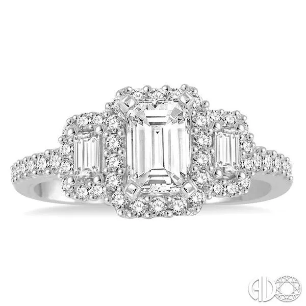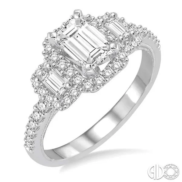 (256) 764-40131 1/3 Ctw Diamond Engagement Ring with 3/4 Ct Emerald Cut Center Stone in 14K White Gold