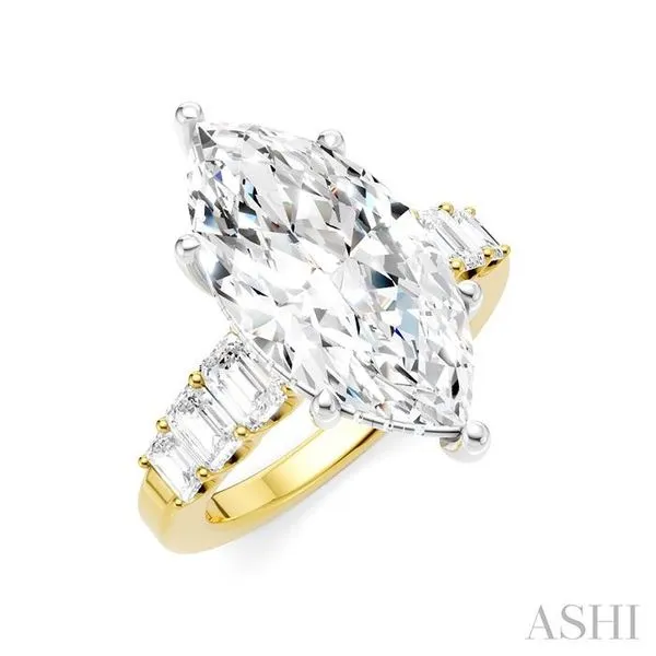 (256) 764-40131 1/4 Ctw Marquise Shape Emerald and Round Cut Diamond Semi-Mount Engagement Ring in 14K Yellow and White Gold