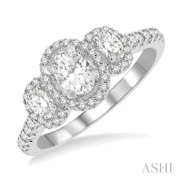 (256) 764-40131 Ctw Past, Present & Future Round Cut Diamond Engagement Ring With 3/8 Ct Oval Cut Center Stone in 14K White Gold