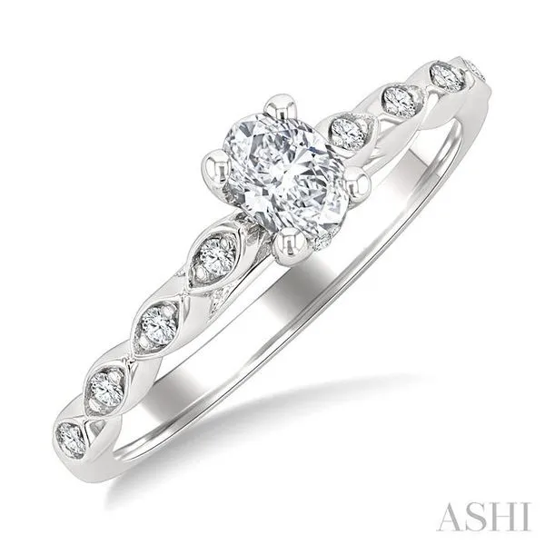 (256) 764-40131/10 Ctw Oval Shape Marquise Mount Shank Round Cut Diamond Semi Mount Engagement Ring in 14K White Gold