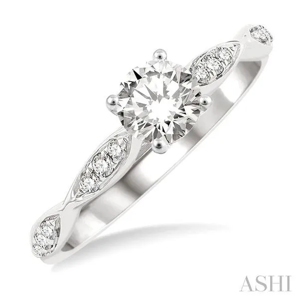 (256) 764-40131/2 Ctw Marquise-Carved Shank Engagement Ring With 1/3 Ct Round Cut Diamond Center Stone in 14K White Gold