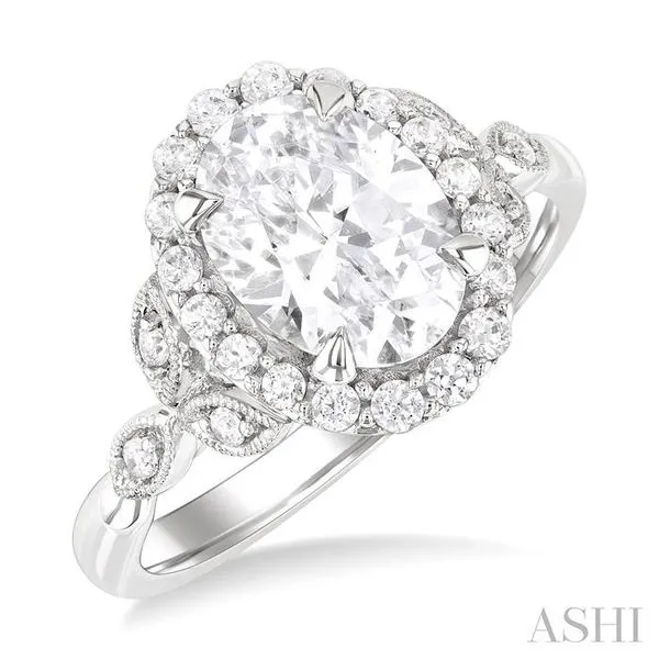 (256) 764-40131/3 Ctw Oval Shape Carved Shank Round Cut Diamond Semi-Mount Engagement Ring in 14K White Gold