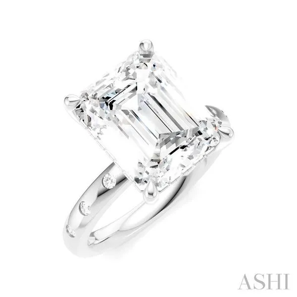(256) 764-40131/5 Ctw Emerald Shape Round Cut Diamond Semi-Mound Engagement Ring in 14K White Gold