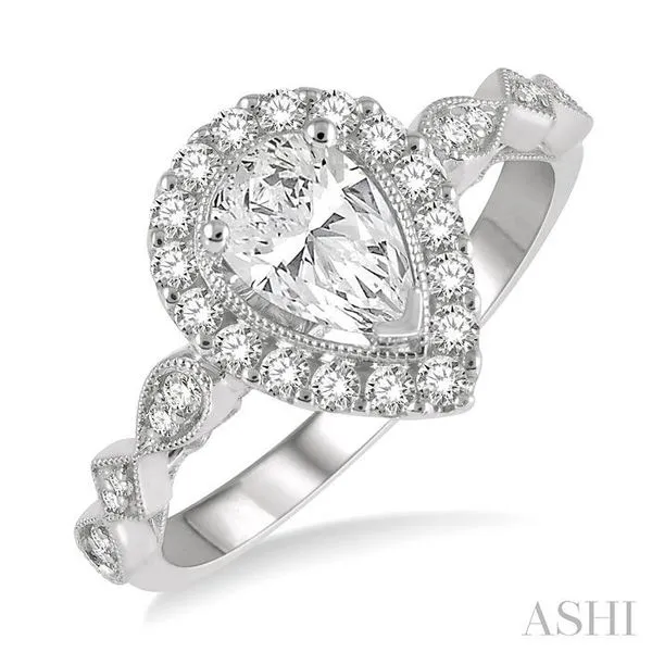 (256) 764-40133/4 Ctw Carved Shank Round Cut Diamond Engagement Ring With 3/8 Ct Pear Cut Center Stone in 14K White Gold