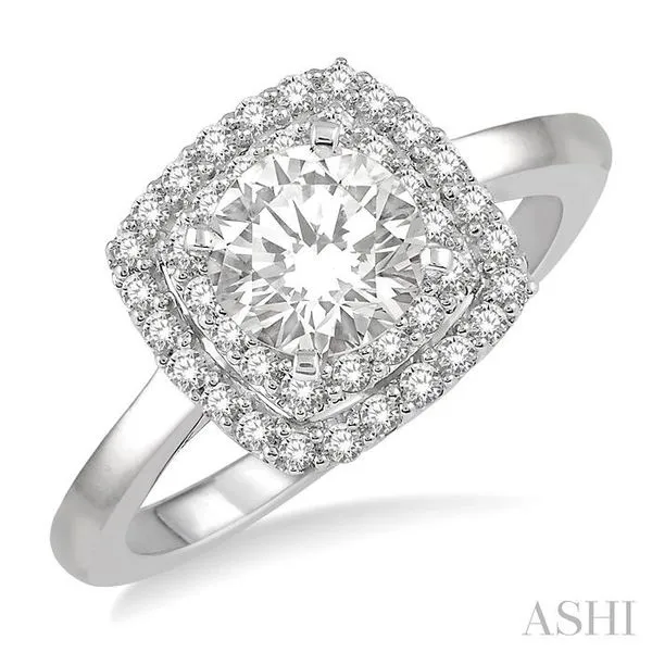 (256) 764-40133/4 Ctw Cushion Shape 1/2 ct Round Cut Diamond Center Stone Ladies Engagement Ring in 14K White Gold
