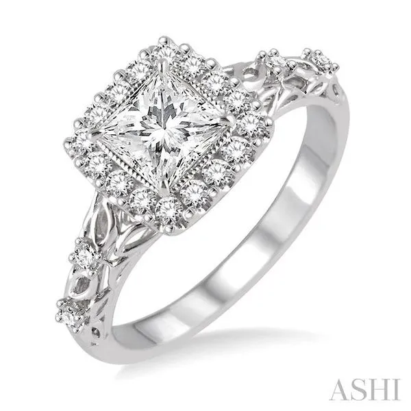 3/4 Ctw Diamond Engagement Ring with 3/8 Ct Princess Cut Center Stone in 14K White Gold Grogan Jewelers Florence, AL