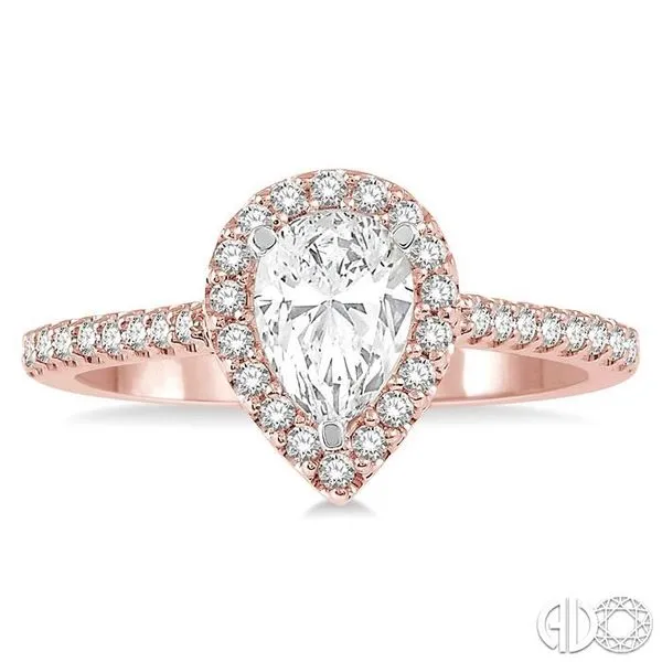 (256) 764-40133/4 Ctw Diamond Ladies Engagement Ring with 1/2 Ct Pear Cut Center Stone in 14K Rose and White Gold