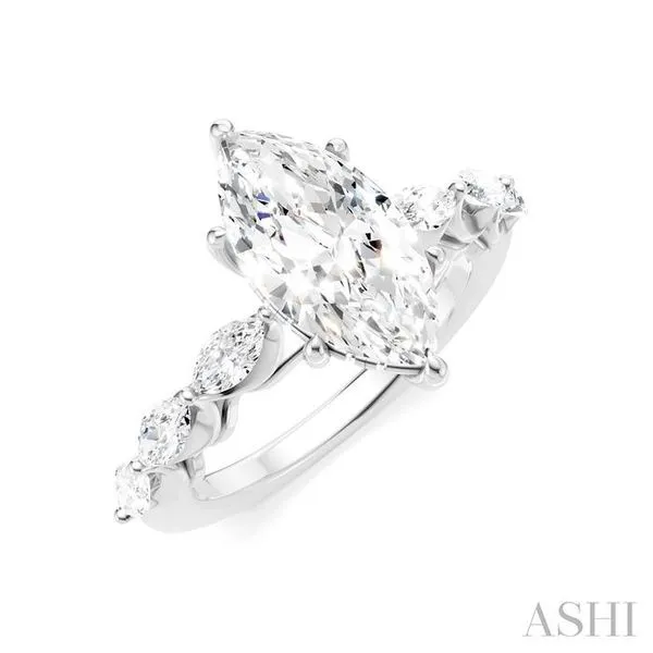 (256) 764-40133/4 Ctw Marquise Shape Marquise and Round Cut Diamond Semi-Mount Engagement Ring in 14K White Gold