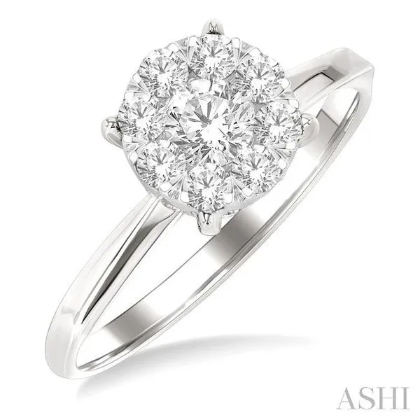 (256) 764-40135/8 Ctw Circular Shape Lovebright Round Cut Diamond Engagement Ring in 14K White Gold