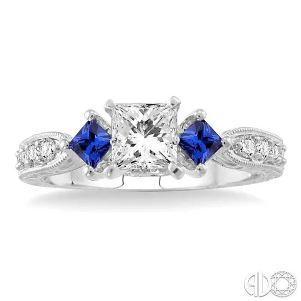 (256) 764-40135/8 Ctw Diamond and 2.8 MM Princess Cut Sapphire Engagement Ring with 3/8 Ct Princess Cut Center Stone in 14K White Gold