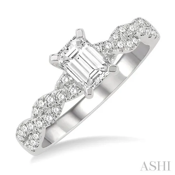 (256) 764-40137/8 Ctw Twisted Shank Round Cut Diamond Engagement Ring With 1/2 Ct Emerald Cut Center Stone in 14K White Gold