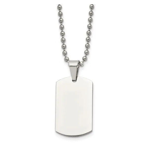(256) 764-4013Chisel Stainless Steel Brushed and Polished 2mm Reversible Dog Tag on a 24 inch Ball Chain Necklace