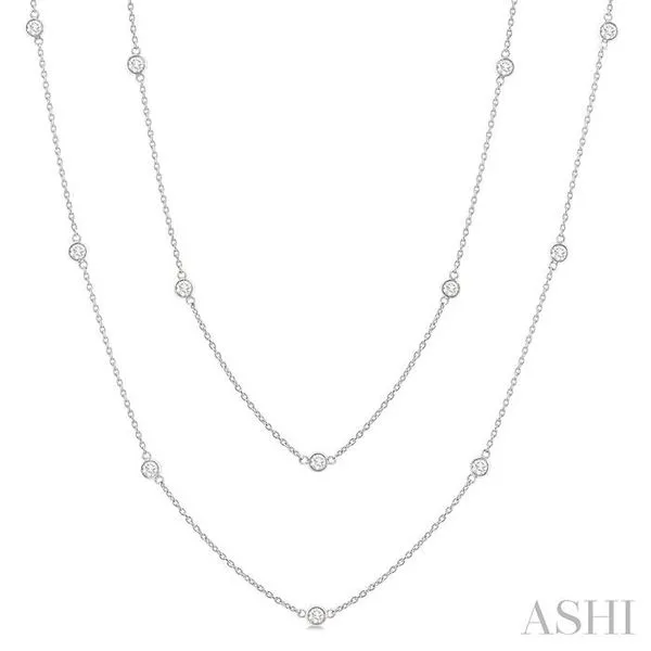 (256) 764-40131 Ctw Bezel Set Round Cut Diamond Station Long Necklace in 14K White Gold