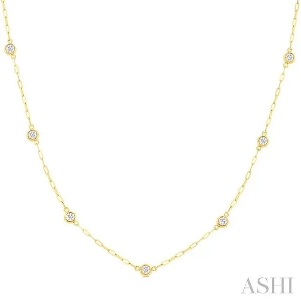 (256) 764-40131/2 Ctw Bezel Set Round Cut Diamond Paperclip Station Necklace in 14K Yellow Gold