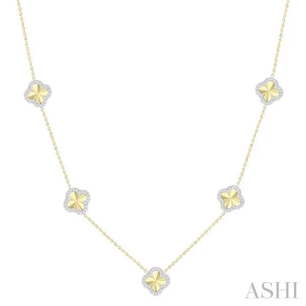 (256) 764-40131/2 Ctw Fluted Clover Station Round Cut Diamond Necklace in 14K Yellow & White Gold