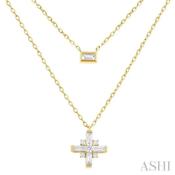 (256) 764-40131/3 Ctw Baguette and Round Cut Diamond Layered Necklace in 14K Yellow Gold