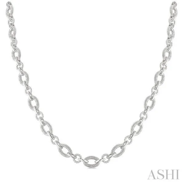 (256) 764-40131/4 Ctw Single Cut Diamond Bold Oval Shape Rope Link Necklace in Sterling Silver