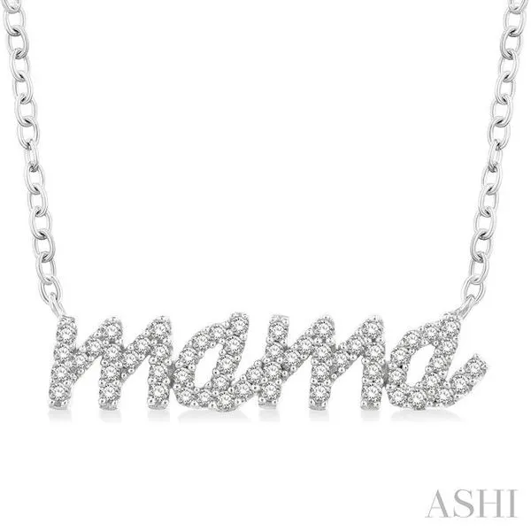 (256) 764-40131/5 Ctw 'mama' Script Round Cut Diamond Necklace in 10K White Gold