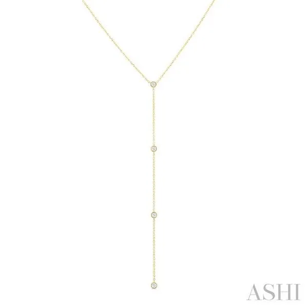 (256) 764-40131/6 Ctw Bezel Set 4-Stone Round Cut Diamond Y-Shape Lariat Station Necklace in 14K Yellow Gold