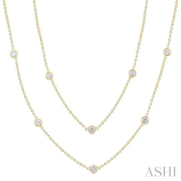 (256) 764-40132 Ctw Bezel Set Round Cut Diamond Station Long Necklace in 14K Yellow Gold