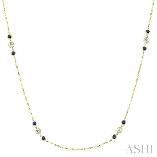 (256) 764-40132.25 MM Sapphire and 1/2 Ctw Round Cut Diamond Precious Station Necklace in 14K Yellow Gold