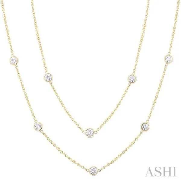 (256) 764-40133 Ctw Bezel Set Round Cut Diamond Station Long Necklace in 14K Yellow Gold