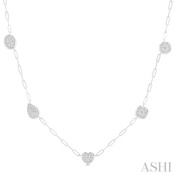 (256) 764-40133/4 Ctw Lovebright Mixed Shape Mount Round Cut Diamond Station Necklace in 14K White Gold