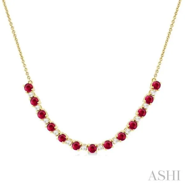 (256) 764-40133.5 MM Round Shape Ruby and 1/2 Ctw Round Cut Diamond Precious Tennis Necklace in 14K Yellow Gold