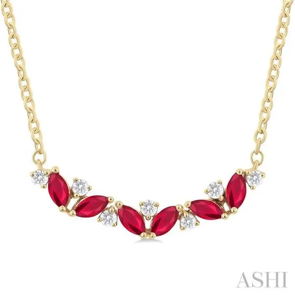 (256) 764-40134X2 MM Marquise Cut Ruby and 1/6 Ctw Zig-Zag Round Cut Diamond Precious Necklace in 14K Yellow Gold