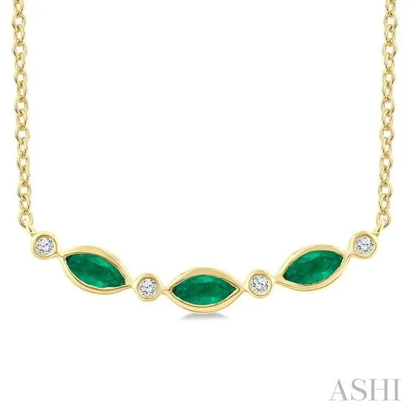 (256) 764-40134X2 MM Marquise Shape Emerald and 1/50 Ctw Round Cut Diamond Precious Bar Necklace in 10K Yellow Gold