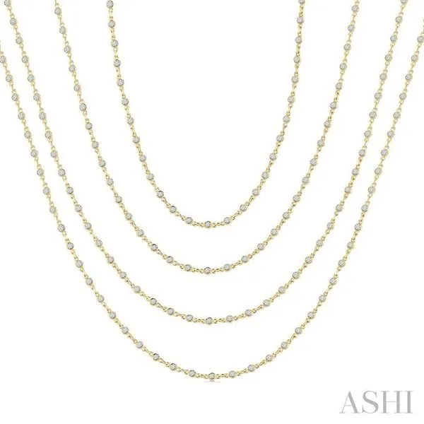 (256) 764-40135 1/2 Ctw Bezel Set Round Cut Diamond Layered 60-Inch Necklace in 14K Yellow Gold