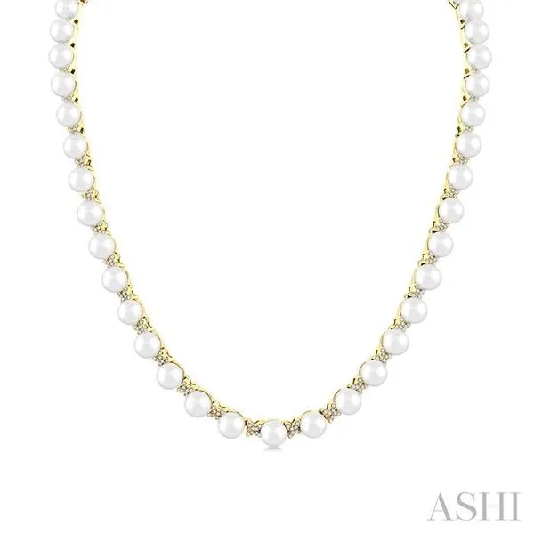 (256) 764-40135 MM Cultured Pearl and 1 1/4 Ctw Round Cut Diamond Floral Fashion Necklace in 14K Yellow Gold