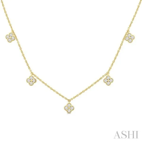 (256) 764-40135/8 Ctw Clover Round Cut Diamond Station Necklace in 14K Yellow Gold
