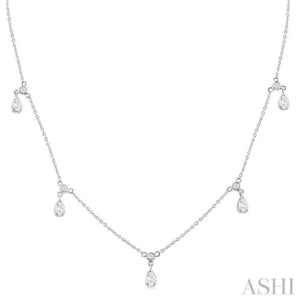 (256) 764-40135/8 Ctw Dangle Pear and Round Cut Diamond Station Necklace in 14K White Gold