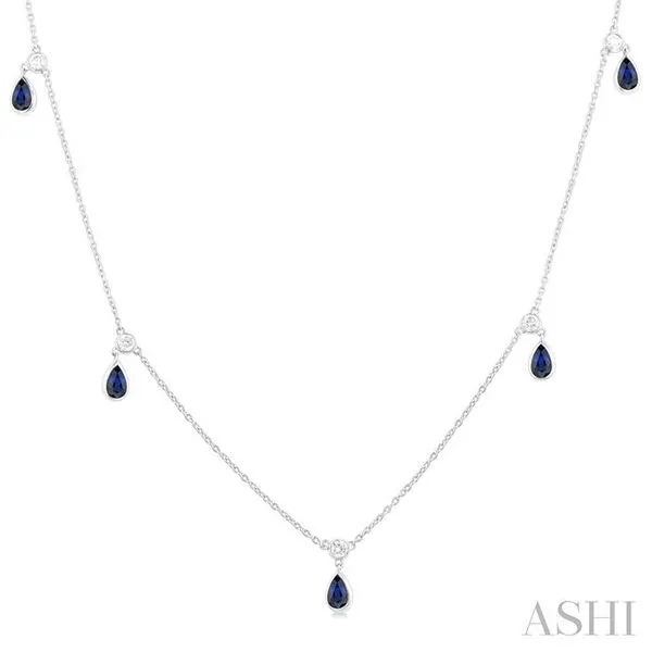 (256) 764-40135x3 MM Pear Shape Sapphire and 1/4 Ctw Round Cut Diamonds Precious Station Necklace in 10K White Gold