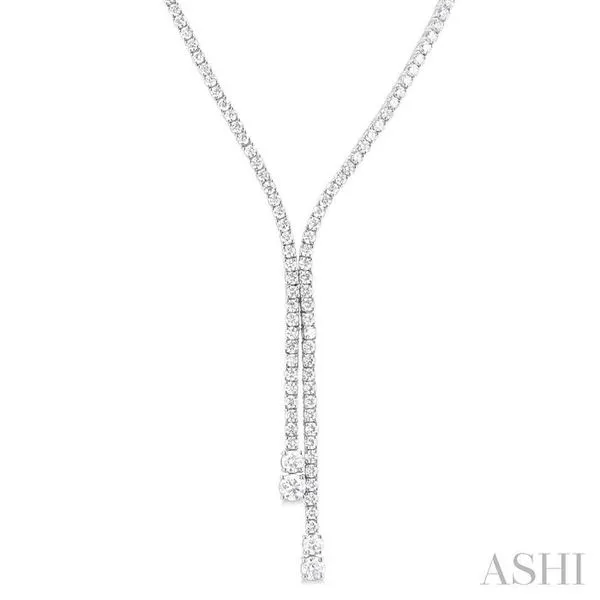 (256) 764-40139 Ctw Y-Split Round Cut Diamond Lariat Necklace in 14K White Gold