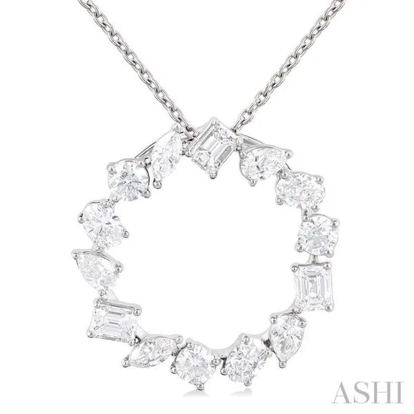 (256) 764-40131 Ctw Circle Multi-Cut Diamond Fashion Pendant With Chain in 14K White Gold