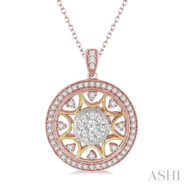 (256) 764-40131 Ctw Round Cut Diamond Lovebright Pendant in 14K Tri Color Gold with Chain