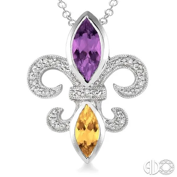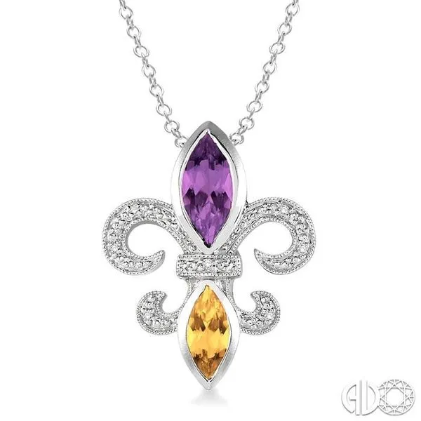 10x5 & 8x4 MM Marquise cut Amethyst and Citrine and 1/50 Ctw Single Cut Diamond Fleur De Lis Pendant in Sterling Silver with Chain Image 2 Grogan Jewelers Florence, AL