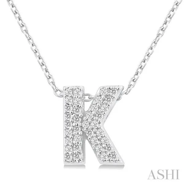 (256) 764-40131/10 Ctw Bubble Accent Initial 'K' Round Cut Diamond Fashion Pendant With Chain in 10K White Gold