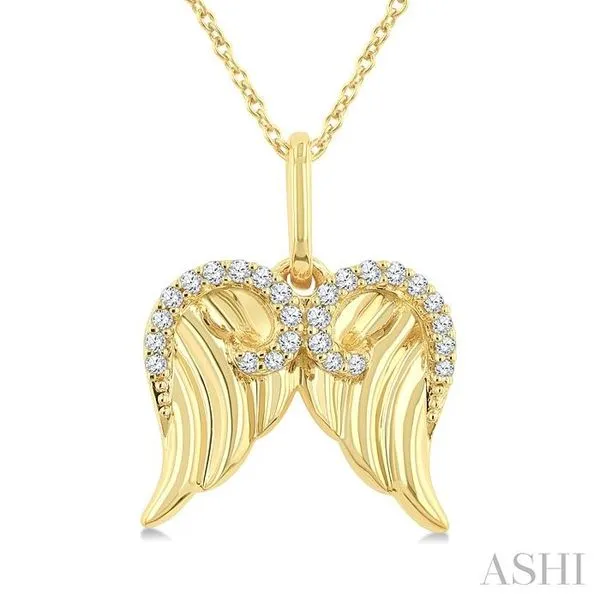 (256) 764-40131/10 Ctw Fluted Texture Angel Wing Single Cut Diamond Fashion Pendant With Chain in 10K Yellow Gold